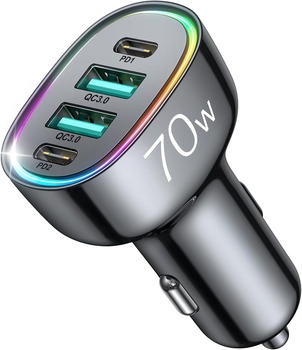 Caricabatterie per auto 70W 4 porte USB tipo C ad alta potenza pd3. 0 QC3.0 PPS ricarica rapida con caricabatterie e adattatore Smart IC